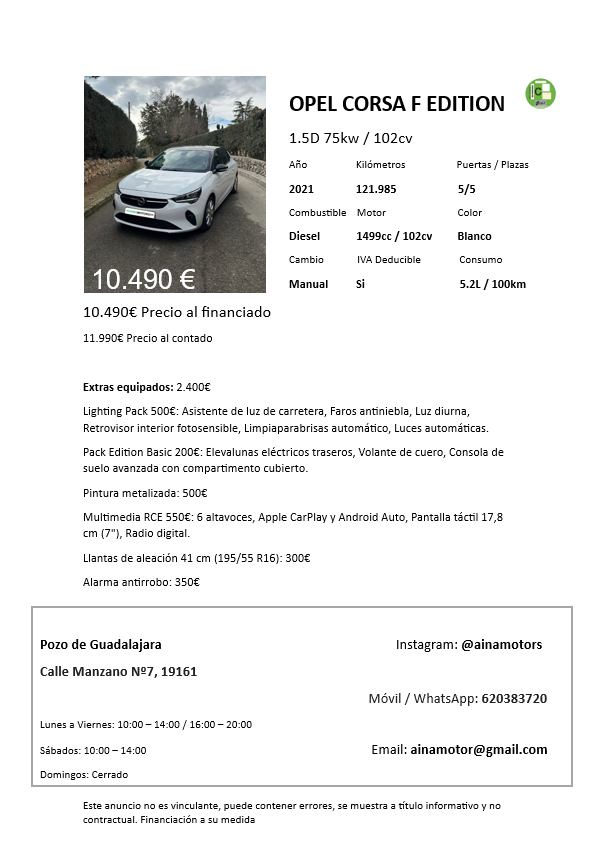 Opel Corsa F Edition 1.5BlueHDi 100Cv