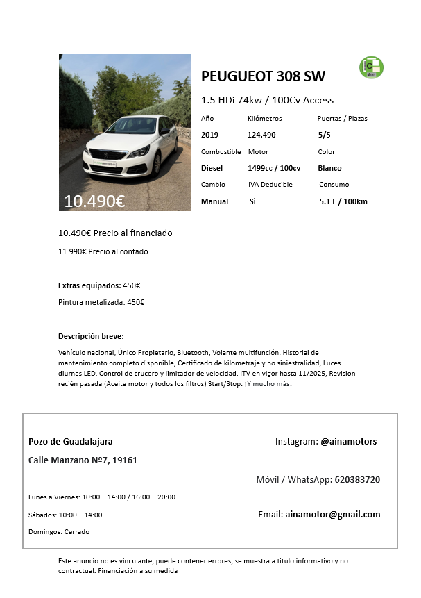 - Modelo: 308 Sw